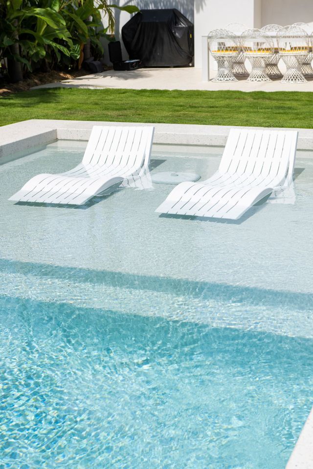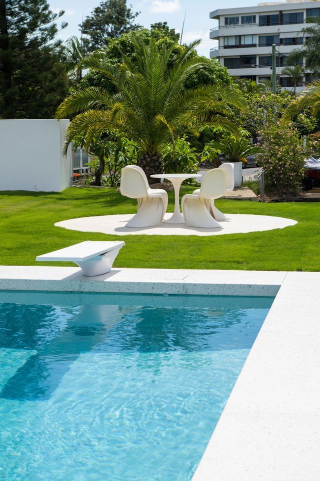 The Paradise Project Pool in surfers paradise was created by Gold Coast Pool Builder and Beith Building using concrete supplied by Nucon for the pool surrounds and patio area. This is the perfect palm spring vibe for summer.