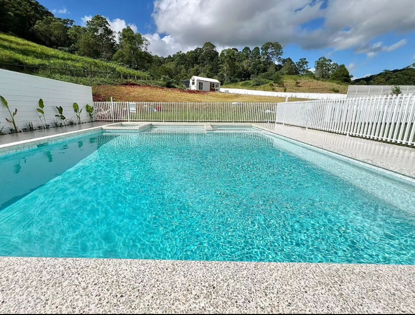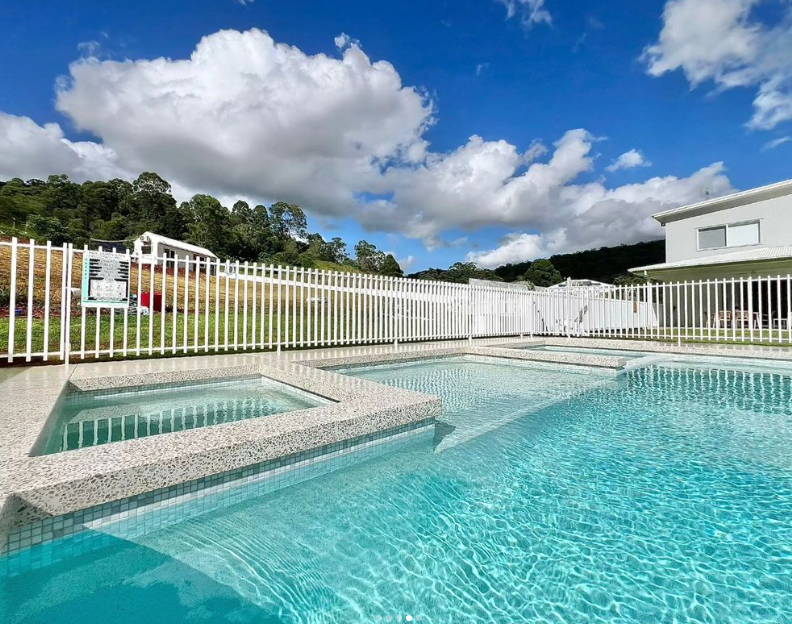 This was another Gold Coast Pool Builder and Beith Building Project. Allambi house is stunning right down to it green pool. Concrete supplied by Nucon for the pool surrounds, patio, BBQ area along with driveway and front entrance stepping pads.